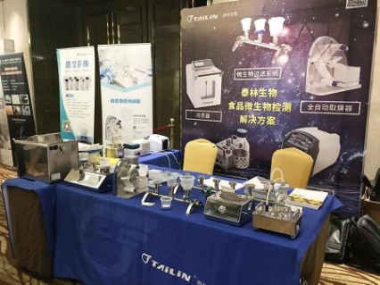泰林生物在現場展示了均質器、新型微生物檢測儀、三聯/六聯微生物過濾支架、自動取膜器、新型隔膜泵、勻漿儀、全新水活度儀等相關技術和設備,以及質控菌株、微生物檢測過濾器、無菌濾膜、均質袋、培養皿等一批檢測用耗材。